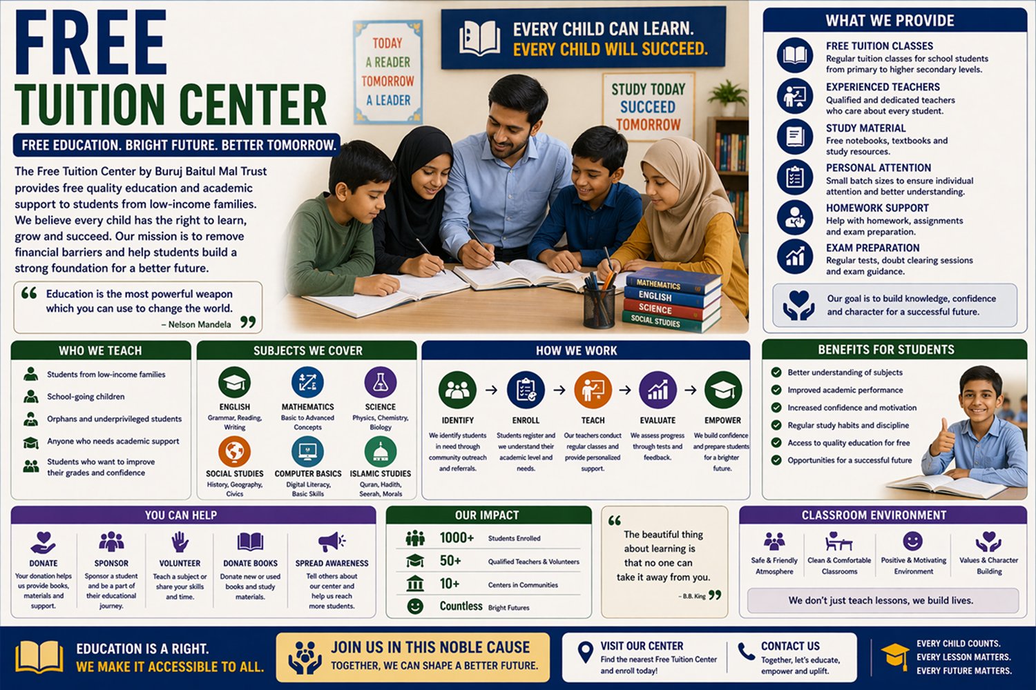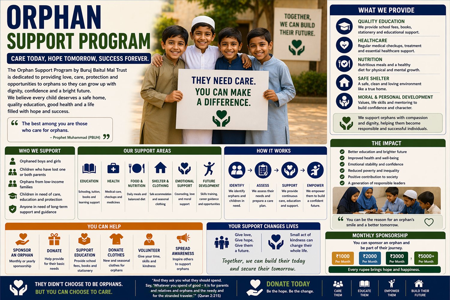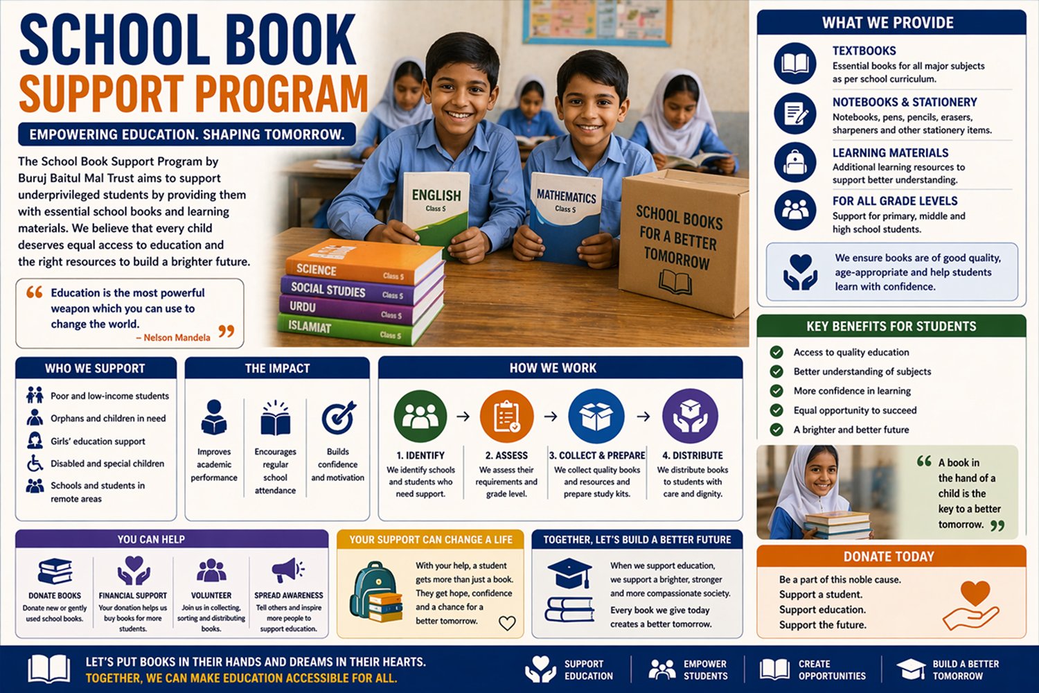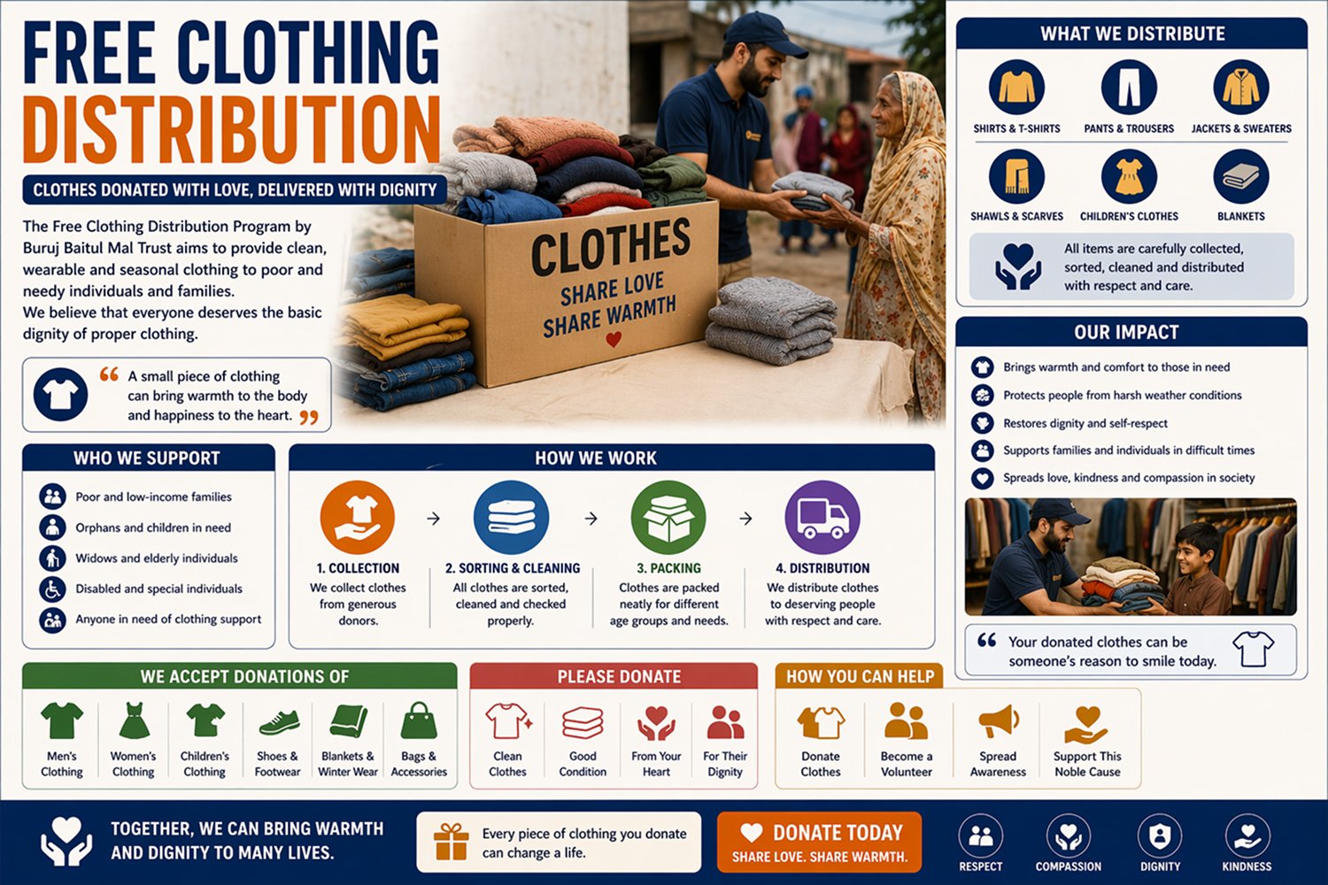 At Buruj Baitul Mal Trust, every project is designed to help the poor, needy, and underprivileged members of society. Our goal is to ensure that no one is left without food, education, healthcare, or basic support. With your help, we are running multiple initiatives that bring real change to people’s lives.